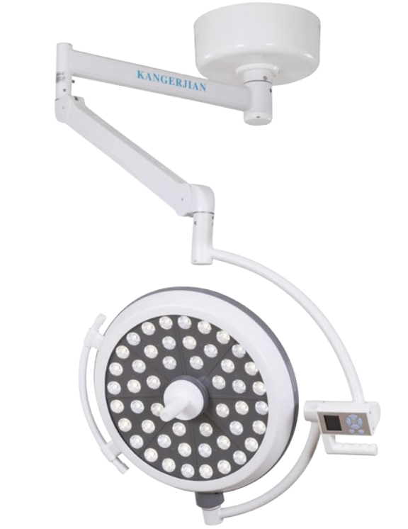 手術無影燈一般由單個或多個燈頭組成,系定在懸臂上,能做垂直或循環移動,懸臂通常連接在固定的結合器上,并能圍著它旋轉。無影燈采用可消毒的手柄或設消毒的箍(曲軌)作靈活定位,并具有自動剎車和停止功能以操縱其定位,在手術部位的上面和周圍,保持相宜的空間。無影燈的固定裝置可安置在天花板或墻壁上的固定點上,也可安置在天花板的軌道上。