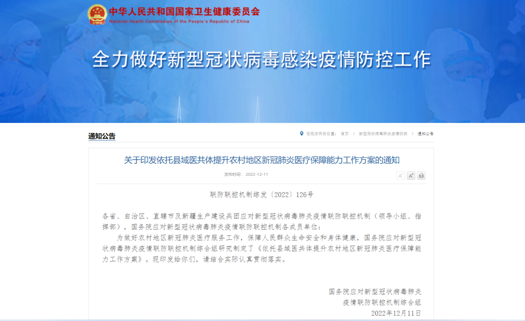 為落實縣域新冠分類分級診療工作,該方案對鄉(xiāng)鎮(zhèn)衛(wèi)生院、縣域醫(yī)共體牽頭醫(yī)院、定點醫(yī)院、亞定點醫(yī)院、城市對口幫扶醫(yī)院等主體的責任和任務(wù)予以進一步明確。