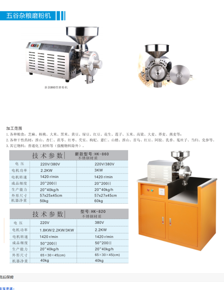HK-860五谷雜糧磨粉機(3KW)電機功率3KW